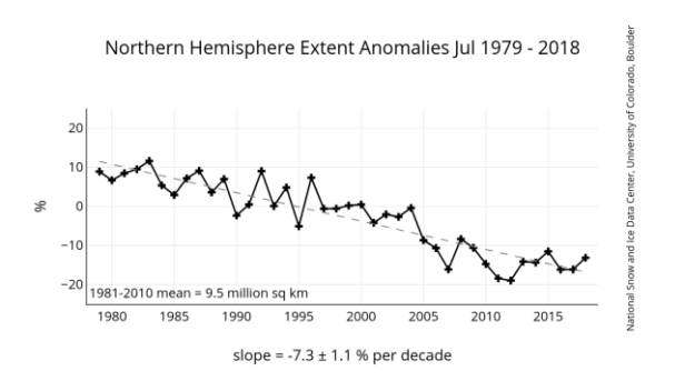 Uno de los fenómenos que más claramente está actuando en este sentido es el deshielo del Ártico; la disminución de la banquisa helada. Las evidencias son claras, aunque existen diversidad de opiniones sobre la intensidad de la tendencia. En 2017, la NASA anunció que la reducción de la banquisa ártica era de un 1,3 % anual de media.