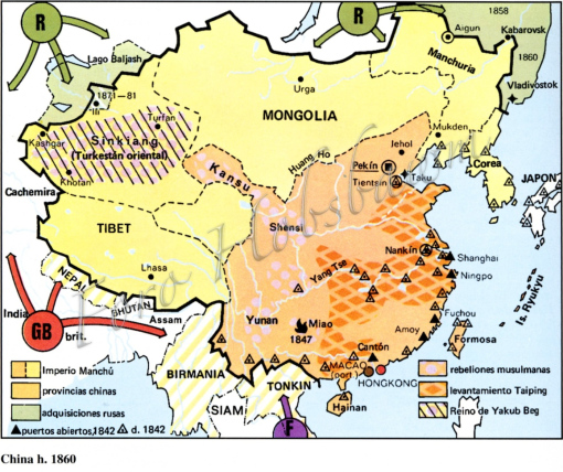 China era a mediados del siglo XIX un gigante con pies de barro. Diversos factores –un crecimiento demográfico elevado, frecuentes hambrunas, una burocracia gobernante anquilosada…– fueron generando un creciente malestar social que se manifestaba a través de revueltas populares recurrentes.