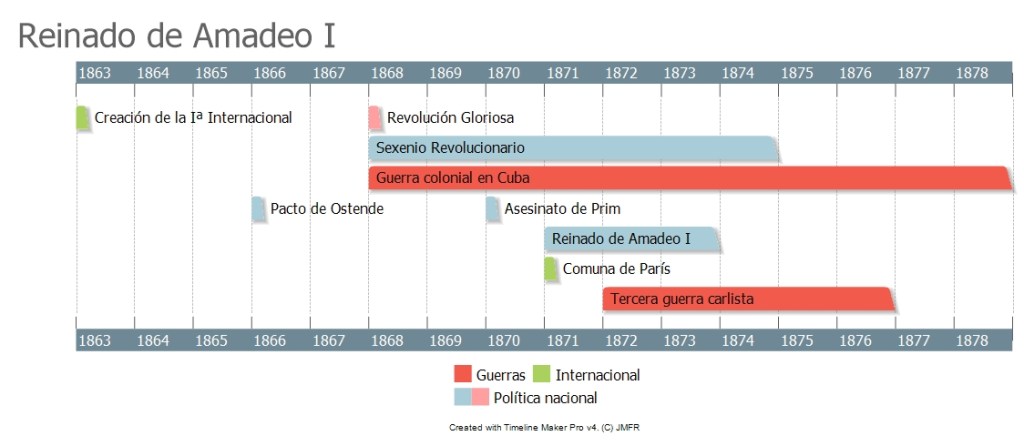 El reinado de Amadeo I (1870-1873) fue un período convulso. A las luchas políticas, incluso entre los que teóricamente le apoyaban, se les sumaron dos guerras coincidentes cronológicamente. Además, Amadeo I nunca pudo ganarse la confianza del pueblo ni de lo que podemos denominar poderes fácticos –Iglesia, Ejército, gran parte de la aristocracia, propietarios coloniales–, que no ocultaban sus simpatías borbónicas.