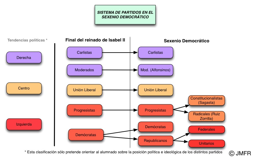 A principios de octubre de 1868 se formó un gobierno provisional presidido por el general Serrano que convocó elecciones municipales para diciembre. En enero de 1869 se celebraron elecciones generales a Cortes constituyentes, en las que progresistas y la Unión Liberal (un partido que puede considerarse de centro) obtuvieron la mayoría, aunque los republicanos también lograron buenos resultados (85 diputados).